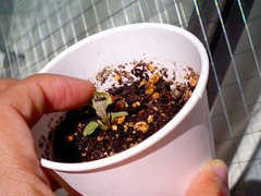 パンジーの苗にチョウチョの赤ちゃん発見です。