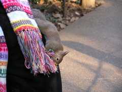 リスを招くコツは、じっと動かずにひたすら待ち続けるのがいいようだ。