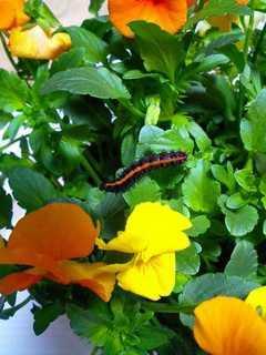 食欲がすごく、私のパンジーでは追い付かないのでビオラの鉢植えを買ってきたのですが、写真を撮った後で殺虫剤の可能性に気が付きあわてて元の鉢に戻しました。