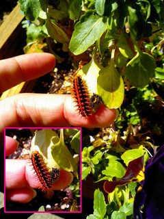 虫の横にある黒い固まりが脱皮した皮です。