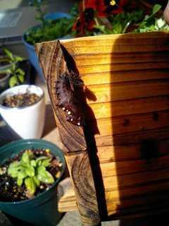 小さい方のもう1匹はまだ幼虫ですが、最終段階です。ひなたぼっこが大好き。