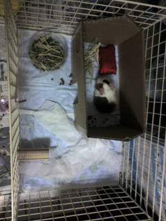本当はもっとケージは広いんですが怪我をしたようで歩き回ると駄目かなと思い、狭くしました…