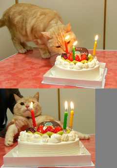 今年もケーキ置いたとたんにぺろーんと…orz