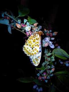 地面に近くにいたので、前の子と同じくブルーベリーの枝に停まらせました。