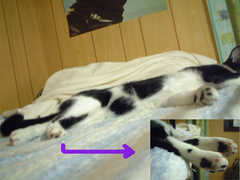 以前撮った写真の中に牛柄が写ったものがありました!肉球と合わせてお楽しみ下さいませ。