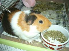 はじめまして。モコです。 モルモットを飼うのは初めてです。これからどうぞヨロシクお願いします。 もうすぐ飼い始めて4ヶ月たちます。 このブログを見つけてたくさんのかわいいモルを見たらうちの子も載せたくなって載せてみました。