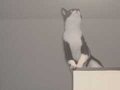 階段上の棚でのび~ん。