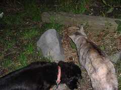 わんと一緒にお散歩中。自分は猫ではないと思ってる。