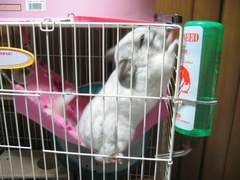 ハンモック設置してみました、ケージ内ごちゃごちゃしてるから無理矢理…