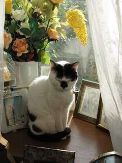 今の時期、午後は暖かいこの出窓が定位置です