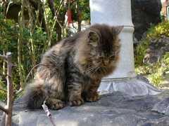 私も初めて見た時、何だか主っぽい!と思いました。実際は声が高くて、人なつっこくゴロゴロ言うかわいい子なんですけどね(w お寺の入り口にいるので、よく観光客に触られてます。
