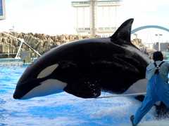 名古屋港水族館のシャチのくーちゃん♀です。