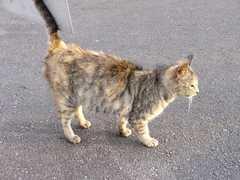 お痩せさん看板にスリスリ。。。早く何か頂戴~。。。