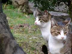 今日は見かけない白い猫ちゃんがいて、みんな警戒してました。