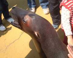 ふれあいタイムで散歩に出てきてくれたアシカのチーちゃんです。
