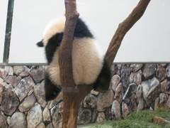 こちらは、木登りをしている子パンダ。