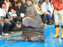 セイウチさんの3段腹で「いただきます」ポーズ。
