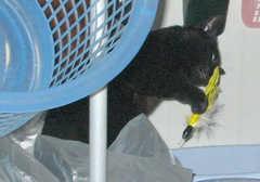 このごろ羽根オモチャの残骸をどっかから見つけて、くわえてドドドドーって走ったり
