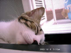 アルミサッシで悠々眠るうちのむぎ。