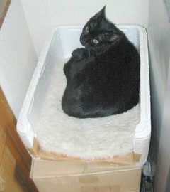 新しい居場所は冷蔵庫の裏にあるキャットタワーの段ボール~